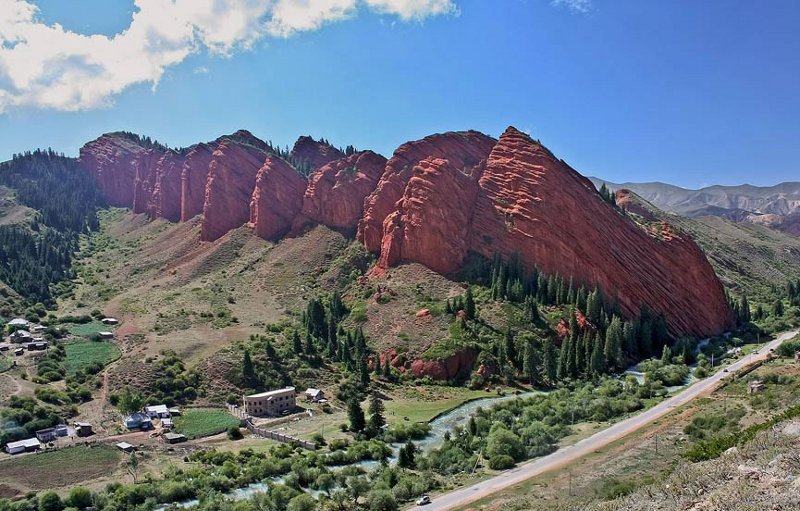 Кыргызстан – это небольшая горная страна, настоящим сокровищем которой является уникальное озеро Иссык-Куль. Оно лежит среди гор Тянь-Шаня на высоте более полутора тысяч метров и уже не одну тысячу лет отражает в своем бескрайнем зеркале высокое кыргызское небо. Окружающие озеро горные отроги изобилуют многочисленными живописными ущельями, из которых к Иссык-Кулю сбегают шумливые ледяные горные реки. Горная долина реки Джеты-Огуз, впадающей в Иссык-Куль на юге, является одним из самых красивых мест долины. Ущелье начинается в 28 километрах к западу от города Каракол, и прорезает северный склон могучего хребта Терскей, уходя далеко вглубь Тянь-Шаня, к его небесным вершинам и бескрайним ледникам.